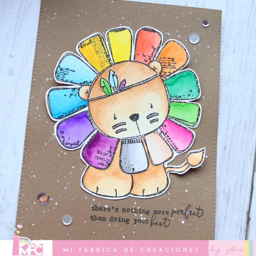 He vuelto a utilizar el estilo clean and simple: Un papel kraft, tu sello favorito, un poco de acuarelas, unas manchas blancas de fondo y unas lentejuelas para adornar.🫶🏻